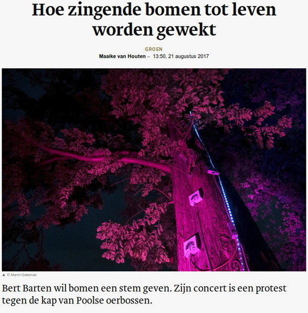 In Bergeijk werd op 17 augustus 2017 voor het eerst een concert op basis van het bioritme van bomen gegeven. Dat is mede mogelijk gemaakt door sensoren en een nieuw ontwikkelde meettechniek van Frans Rasenberg. Trouw maakte er een uitgebreide impressie van.